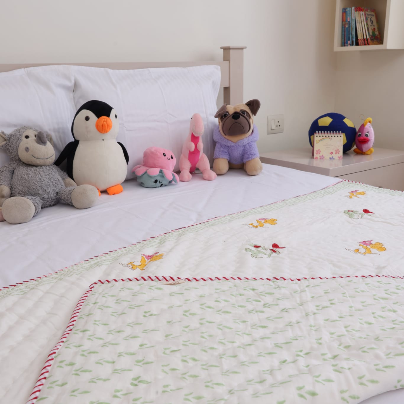 Bunny & Heart Balloon Hand Block Printed Kids' Quilt