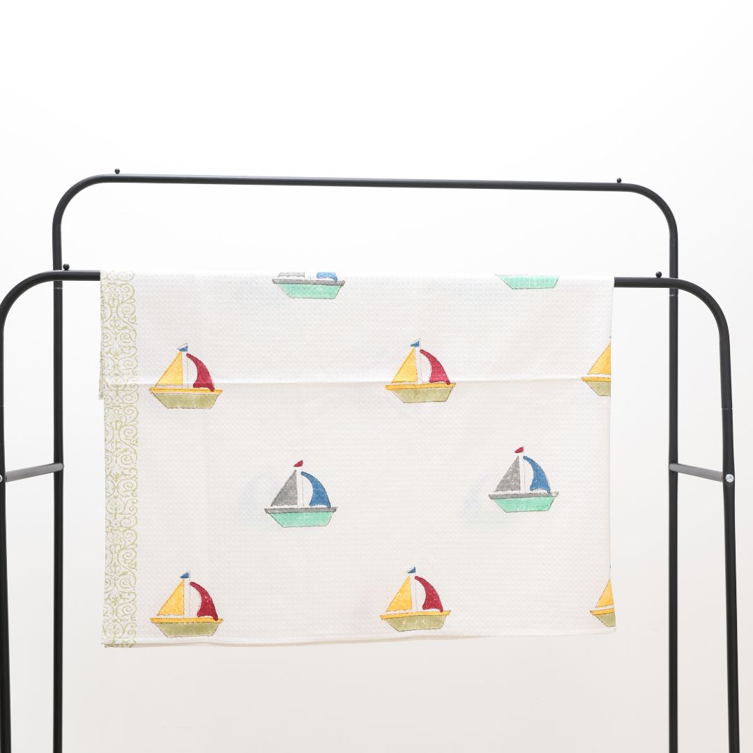Handblock Printed Cotton Kids’ Quilt – Boat Design