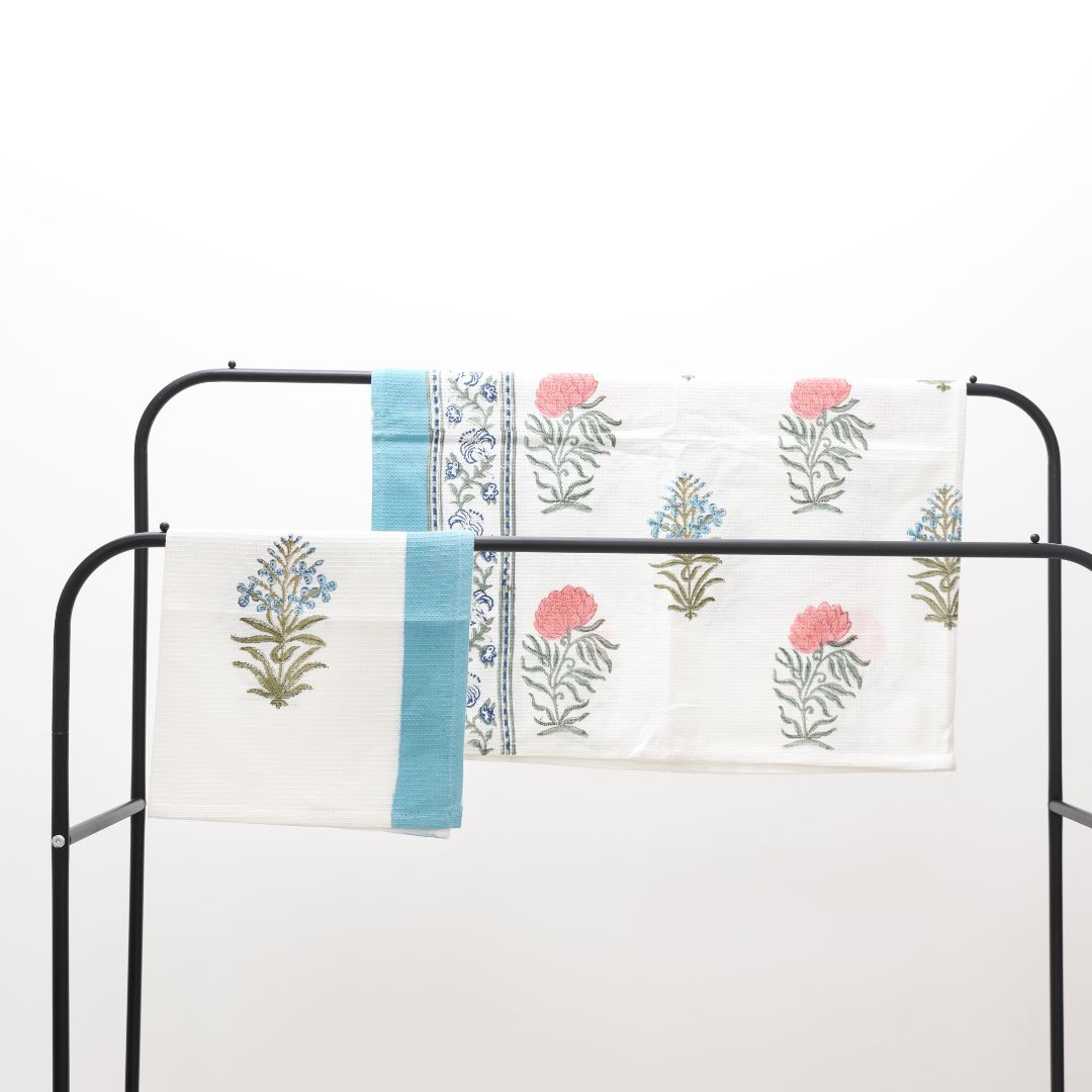 Carnations Handblock Towel & Napkin Set