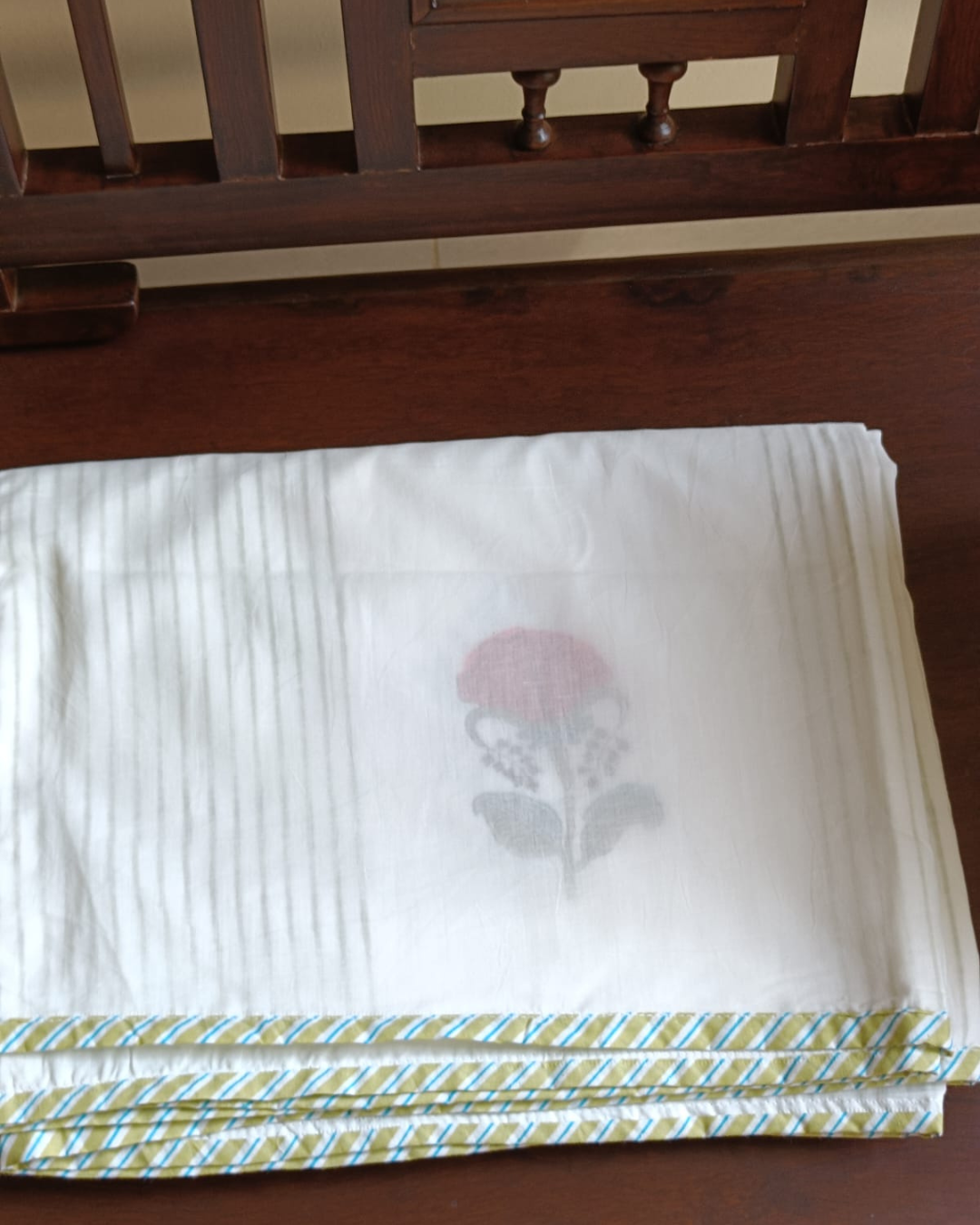 Inspired by lush greenery, this floral dohar carries refreshing patterns that brighten any space. Soft yet vibrant, it’s a reminder of nature’s calm embrace.
