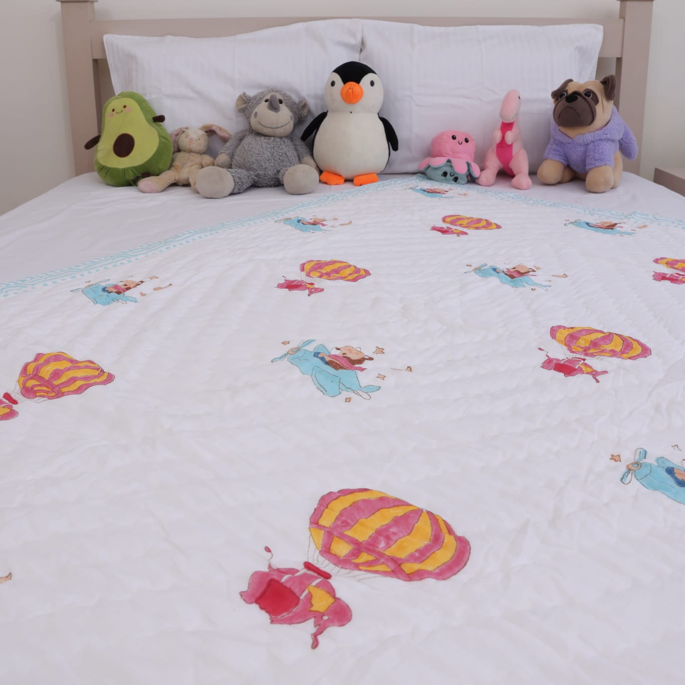 Hot Air Balloon Hand Block Printed Kids' Quilt