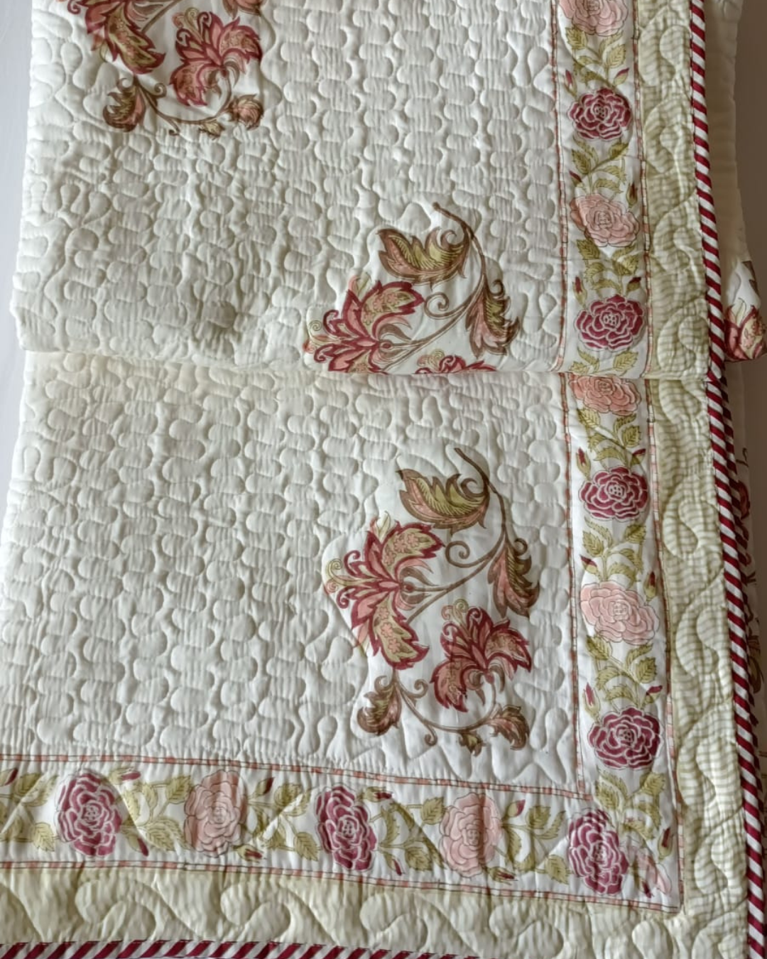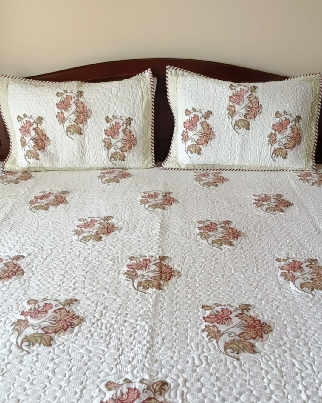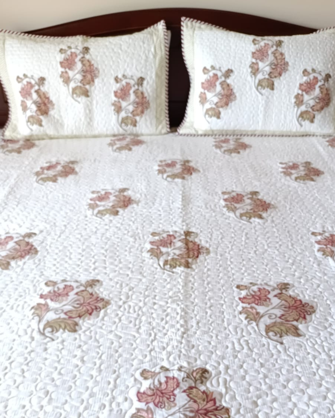 Lavender Flower , Handblock Quilted Comforter Set with 2 Pillow Covers