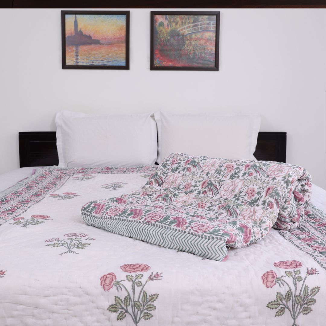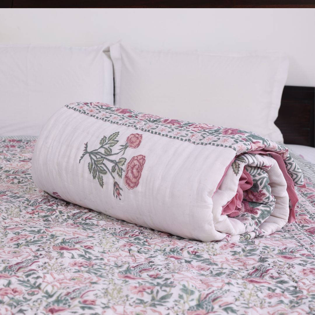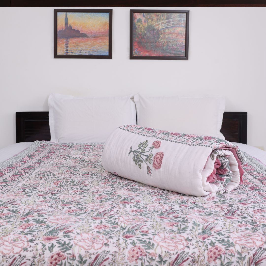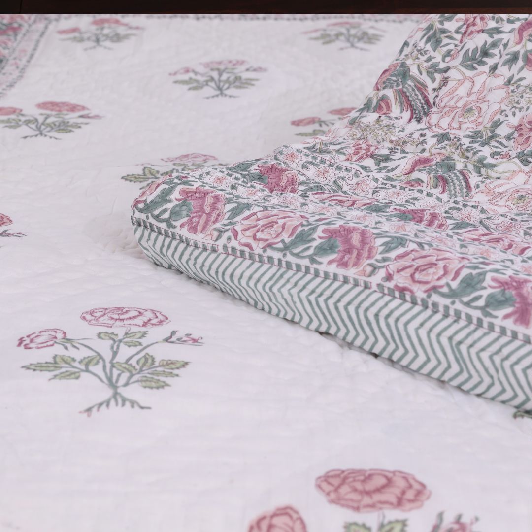 Light Pink Handblock Reversible Single Quilt (Pair)