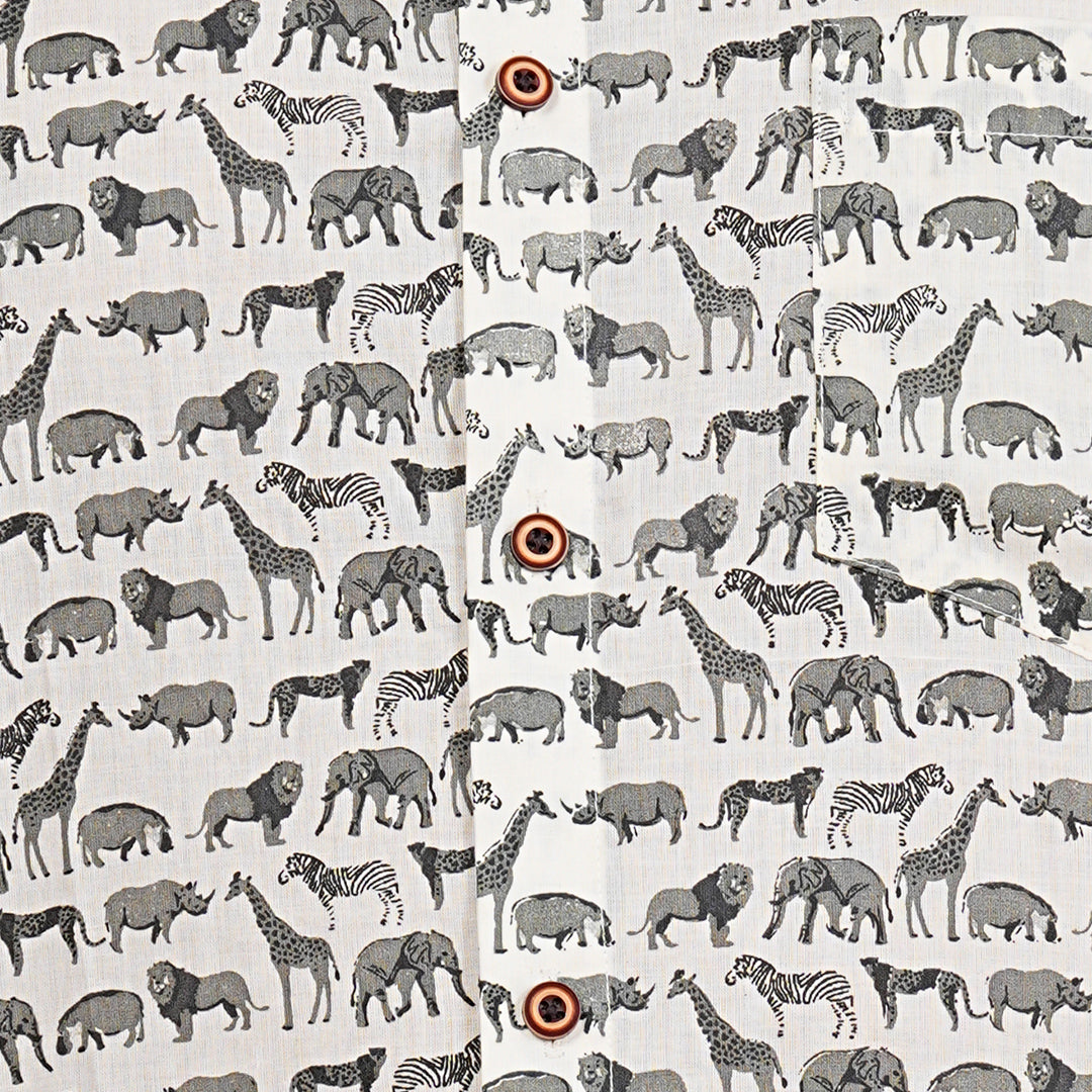 Made from 100% cotton, this regular-fit shirt offers light, breathable comfort ideal for everyday wear. The white base is brought to life with an intricate olive-toned jungle print, complete with a wandering herd, creating a design that’s calm, earthy, and full of quiet movement. Styled with a spread collar, half sleeves, and a front button placket, this shirt is a subtle statement of nature and simplicity. Ethically made in India.