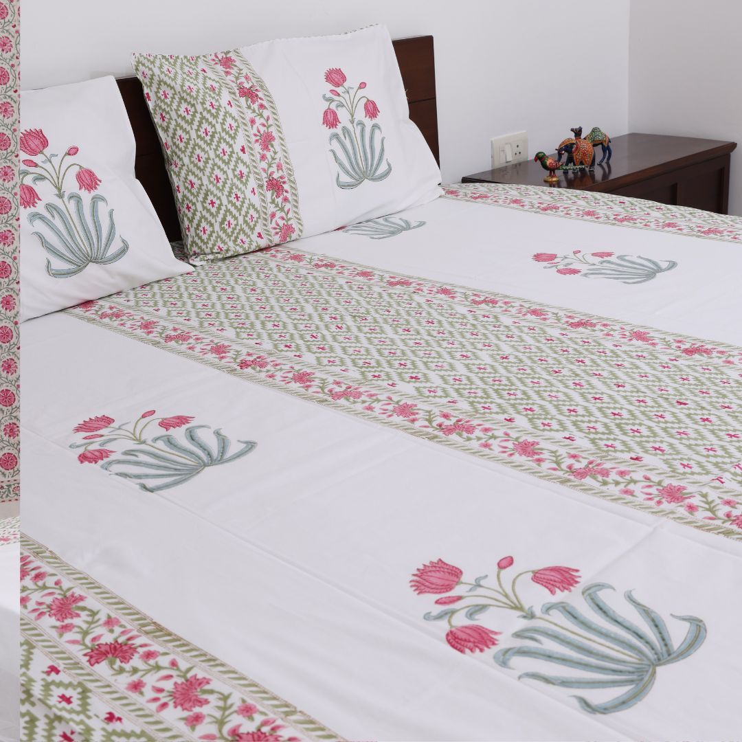 Add a touch of elegance to your bedroom with the Pink Flower Handblock Bedsheet. Featuring intricate floral handblock prints in soft pink hues, this bedsheet brings the timeless charm of Jaipur’s craftsmanship to your living space. Crafted from premium , it offers superior comfort, breathability, and durability, making it perfect for everyday use or special occasions.