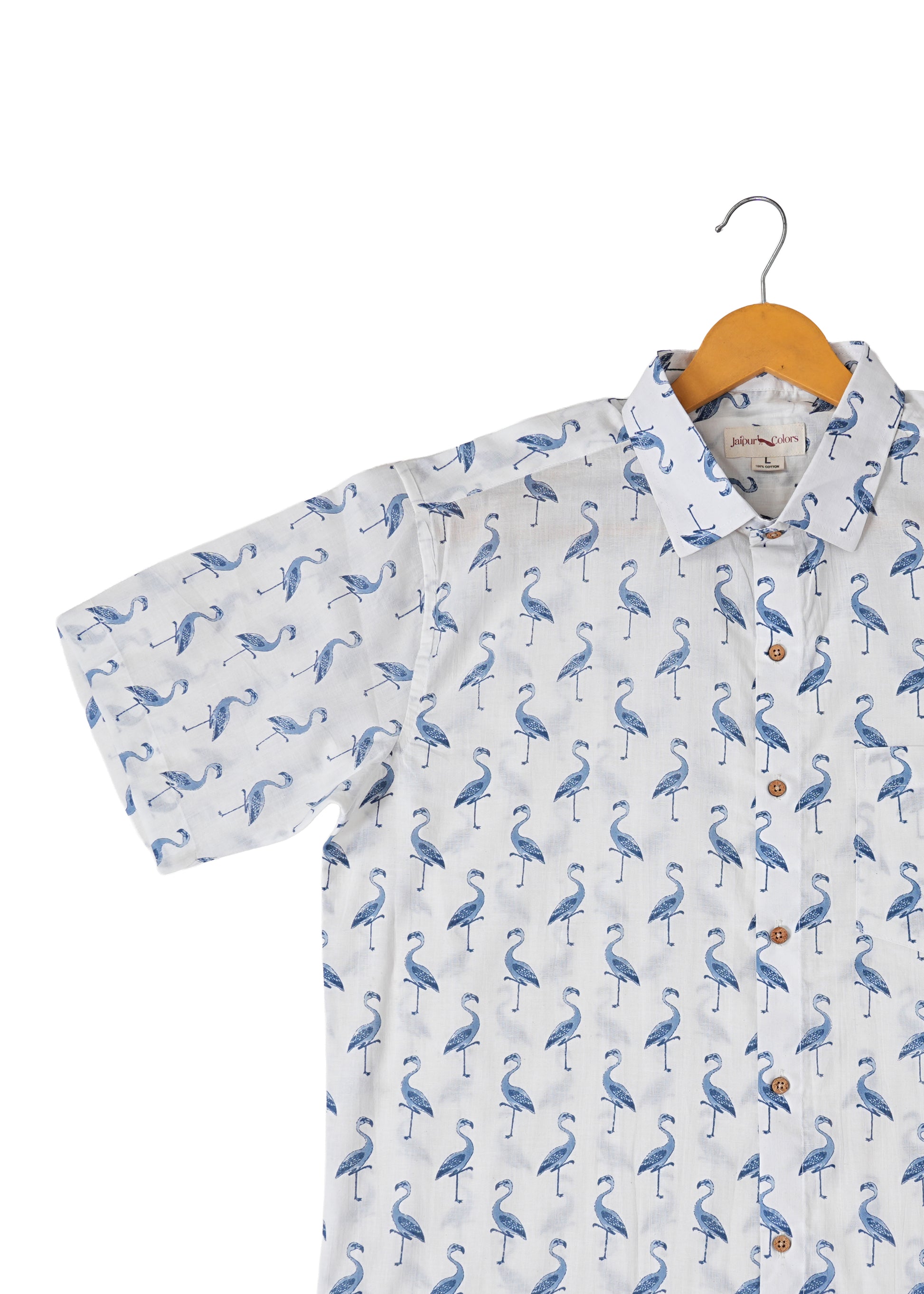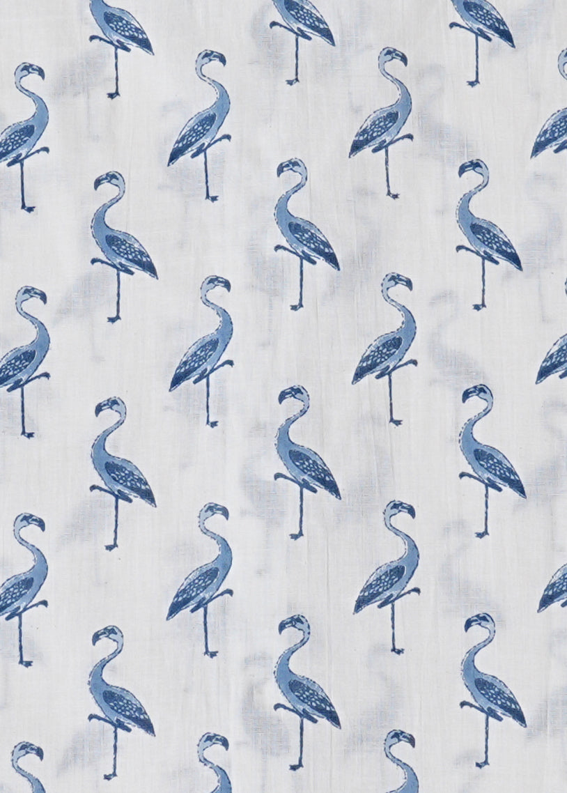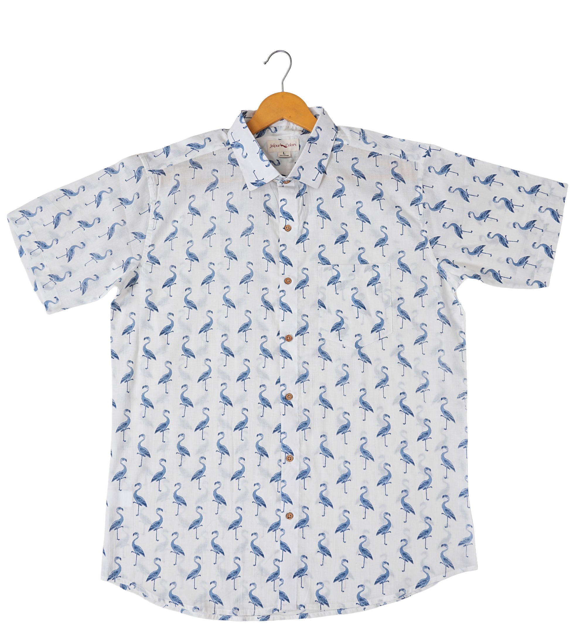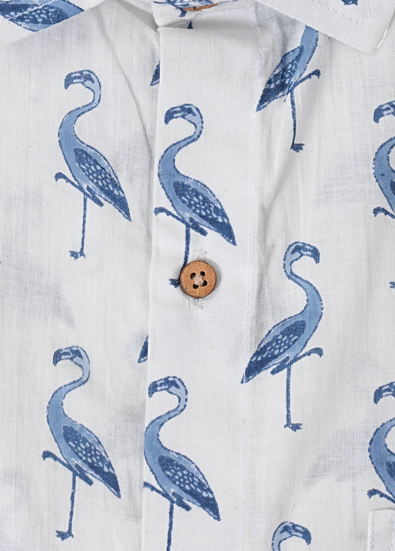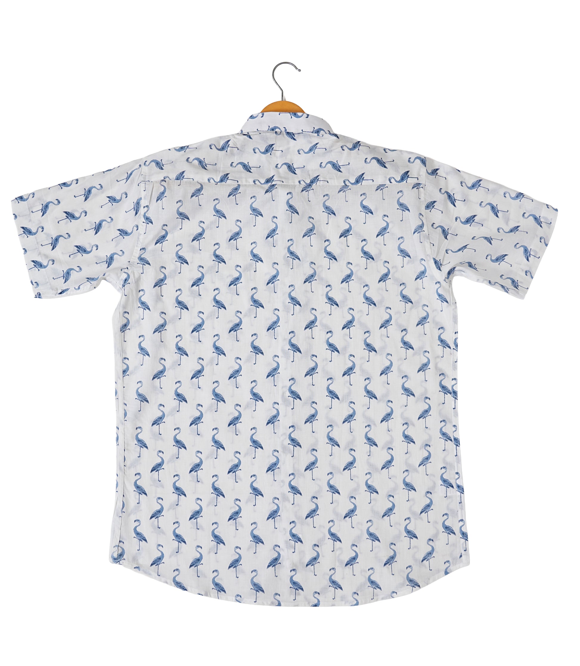 Stay cool and stylish in this 100% cotton shirt featuring a breathable, lightweight fabric and soft-touch feel showcases a charming blue swan screen print on a crisp white base.